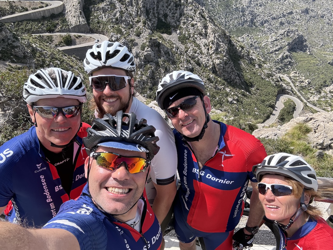 Gut drei Wochen früher als in den vergangenen Jahren begann die BSG in diesem Jahr ihr Frühjahrstraining auf Mallorca. Als Basislager diente das Hotel Ferrer Janeiro in Can Picafort, das sich als Ort der Erholung und Energiequelle für die Touren hervorragend bewährt hat. Auch wenn drei Radler gesundheitlich leicht angeschlagen mit dem Training beginnen mussten, halfen die sommerlichen Bedingungen schnell, Fahrt aufzunehmen. So war das Wetter die ganze Woche vom 16.03. bis 23.03.2024 so gut, dass Armlinge und Windwesten überwiegend nur dem guten Gefühl in den Trikottaschen dienten.